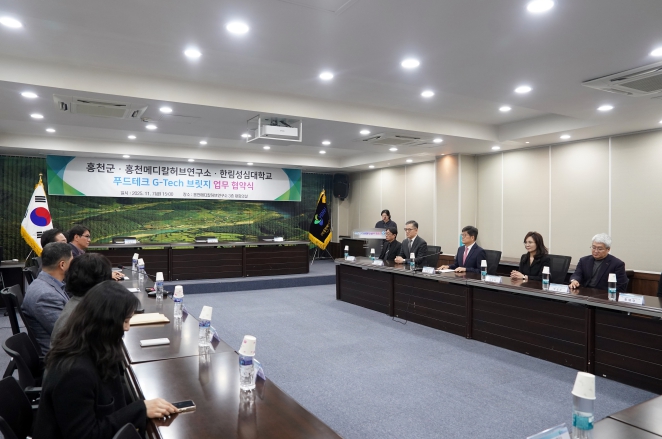 신영재 홍천군수는 “지방자치단체, 대학, 연구기관이 뜻을 모은 이번 협약은 홍천군 식품산업 구조를 고도화하는 중요한 계기”라며 “지역 특색을 반영한 산업 성장과 인재 육성이 조화롭게 이루어지도록 지속적으로 지원하겠다”라고 말했다.