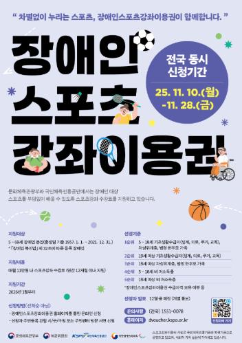 ![]() ‘2026년도 장애인 스포츠강좌이용권’ 신청 홍보 포스터 |