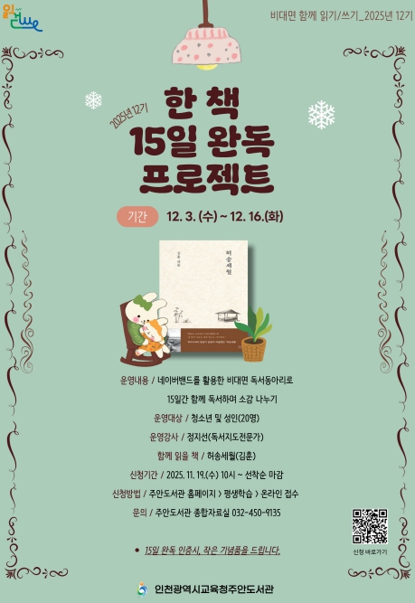 참여 신청은 11월 19일 오전 10시부터 주안도서관 누리집에서 가능하며, 자세한 사항은 종합자료실로 문의하면 된다.