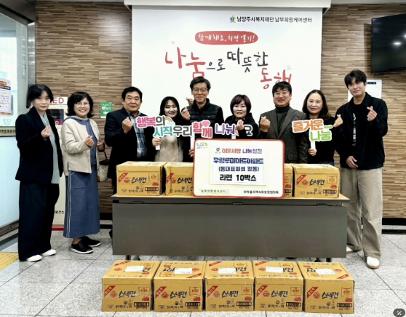 곽용환 와부읍장은 “주민들의 자발적인 기부와 관심이 지역복지를 든든하게 지탱하는 원동력”이라며 “따뜻한 나눔을 실천해준 우림루미아트아파트 입주민들께 감사드린다”고 말했다.