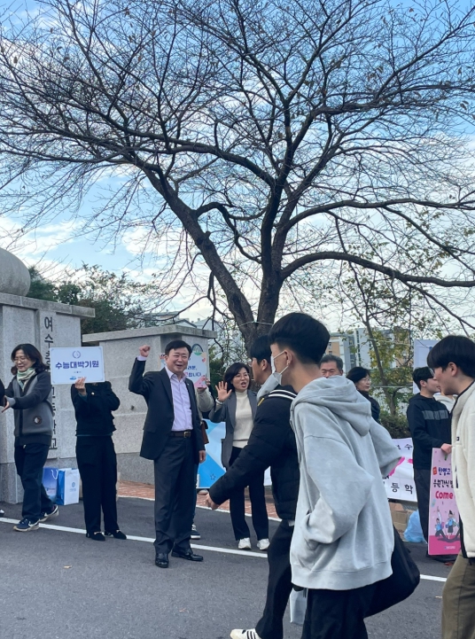 ![]() 2025학년도 대학수학능력시험 당시 정기명 시장 수험생 응원 현장(여수충무고) |