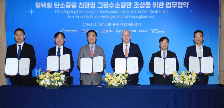 이날 협약식에서는 평택시, 평택지방해양수산청, 경기평택항만공사, 현대차, 기아, 현대글로비스 등 총 6개 기관이 참여해 수소 항만 조성에 공동으로 협력하기로 했다.