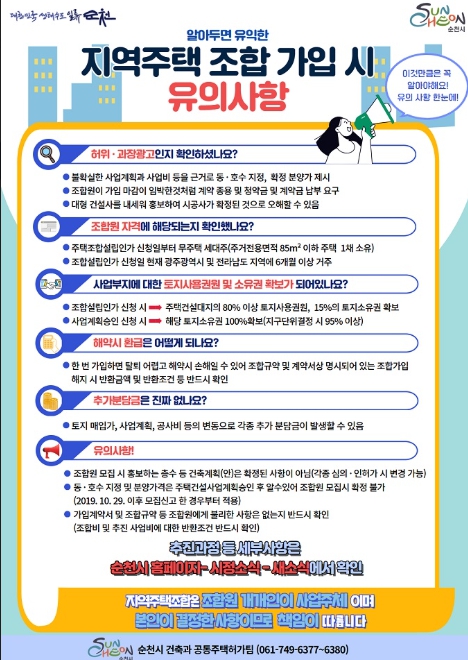 ![]() 순천시, 지역주택조합 가입 시 철저한 확인 당부 |