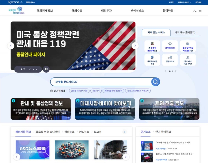 출범 당시 56개 협력기관으로 시작한 정보 제공망은 현재 85개 기관으로 확대되어 정보의 양과 질적 측면도 개선됐다. 특히 미국 통상정책 변동에 대응해 ‘美 관세 및 통상정책 정보’를 실시간으로 제공하고, ‘관세대응 119’ 등 시의성 있는 정보 서비스에 이용자가 몰렸다.