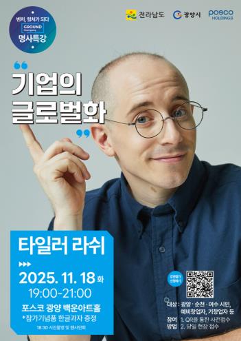 ![]() 광양시, ‘제3회 스타트업 콘서트’ 개최…타일러 라쉬 글로벌 특강 |