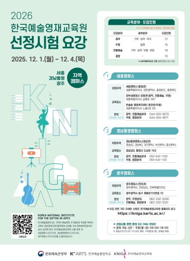 자세한 사항은 한국예술영재교육원 누리집을 참고하거나 한국예술영재교육원 교육지원팀으로 문의하면 된다.