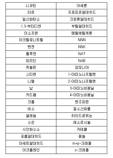 ![]() 궐련 및 궐련형 전자담배 유해성분 |