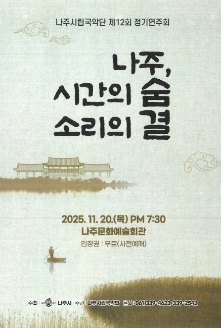 윤병태 나주시장은 “국악이 어렵고 낯선 음악이 아니라 우리의 삶에 스며 있는 따뜻한 예술임을 느낄 수 있는 무대가 될 것”이라며 “시민 모두가 문화예술을 가까이에서 즐기며 일상에서 예술의 향기를 느낄 수 있도록 다양한 공연을 이어가겠다”고 밝혔다.