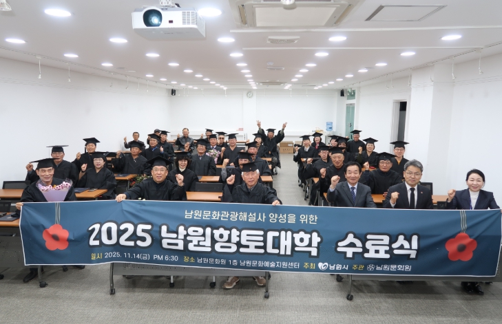 남원문화원은 11월 14일, 남원문화예술지원센터에서 '2025 남원향토대학 수료식'을 개최하고, 총 35명의 수료생을 배출했다.