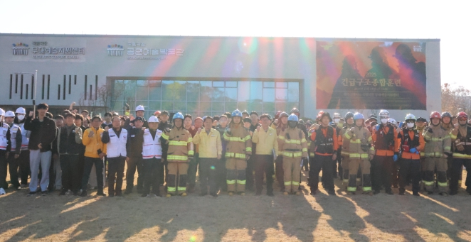훈련은 △화재 발생 및 다수사상자 발생에 따른 초기 대응 △긴급구조지원기관의 총력 대응 △현장지휘권 이양과 복구 수습 활동 등 3단계로 나눠 전개됐다. 이와 함께 재난안전통신망을 통한 실시간 상황 전파, 현장응급의료소 운영, 도시탐색구조, 고립대원 구조 등 다양한 구조기술을 종합적으로 시연하며 실제 재난 상황에 가까운 환경을 조성했다. 특히 서영대학교 소방안전과 119청소년단 학생들이 다수사상자 역할로 참여해 훈련의 몰입도를 높였다.