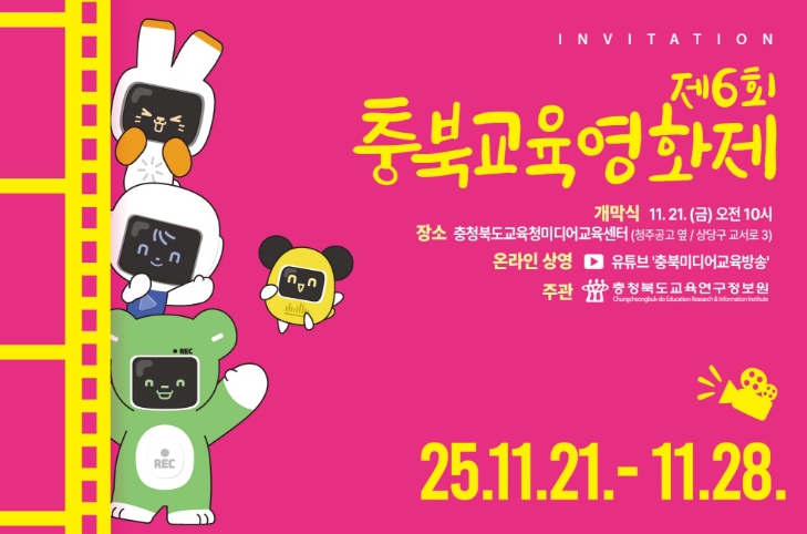 충북교육영화제의 개막식은 21일 오전 10시부터 오후 6시까지, ▲이야기 열기 ▲생각의 지평 넓히기 ▲우리의 배움 이야기 ▲우리의 성장 이야기 ▲서로의 시선 나누기 ▲내일의 나에게 등 영화를 매개로 서로의 생각을 나누는 장이 열린다.