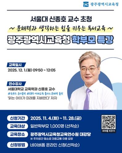 ![]() 광주광역시교육청, 서울대 신종호 교수 초청 학부모 독서 특강 개최 |