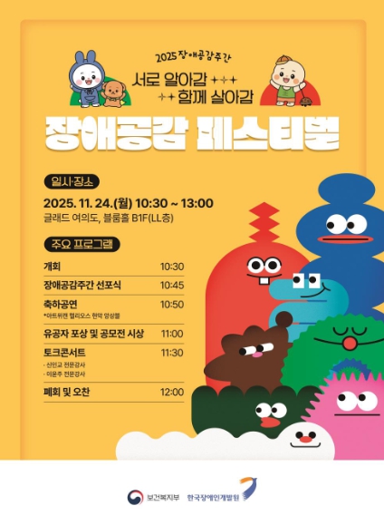 11월 24일 오전, 글래드 여의도(서울 여의도)에서 열리는 페스티벌에서는 사회적 장애인식개선 유공자 포상, 콘텐츠 공모전 시상, 장애공감 토크콘서트와 장애공감주간 선포식 등이 진행된다.