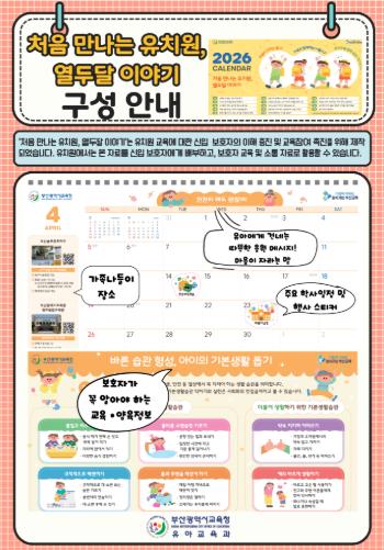 ‘처음 만나는 유치원, 열두 달 이야기’는 유치원 적응, 발달 이해, 놀이·소통·성교육 정보 등 월별 유아교육 및 양육정보를 중심으로 구성되어, 학부모가 참고할 수 있는 실질적인 교육과 생활 정보까지 제공한다.