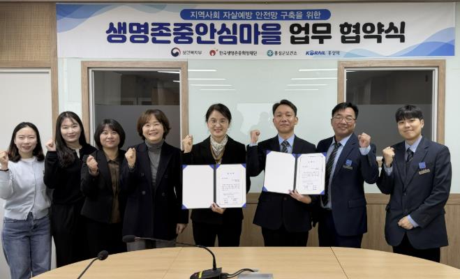 ![]() 홍성군보건소·홍성역, 생명존중안심마을 업무협약 체결 |