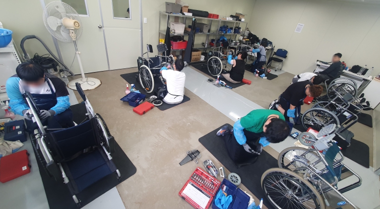 현장 기반 실습과 체계적 기술 교육을 통해 보조기기 사후관리 업무 수행 역량을 높이고, 합격생들은 장애인일자리 사업에 참여해 관내 병원·요양시설, 가정 등에서 휠체어 무료 세척·살균 서비스를 제공하며 지역사회 보조기기 위생 관리뿐 아니라 취약시설 내 감염병 예방 환경 조성에도 기여하고 있다.