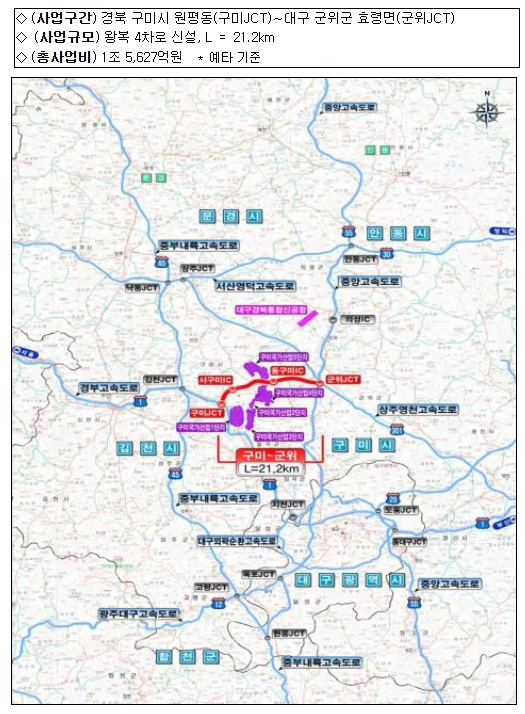 ![]() 구미-군위 고속도로 사업개요 및 위치도 |