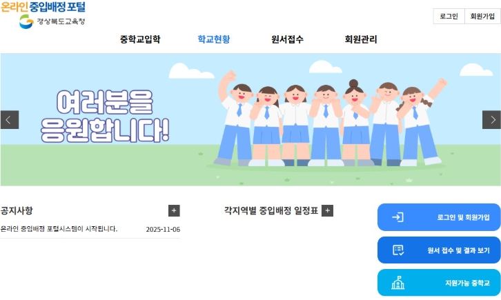 ![]() 경북교육청, 2026학년도 중입배정 원서 온라인 접수 시작 |