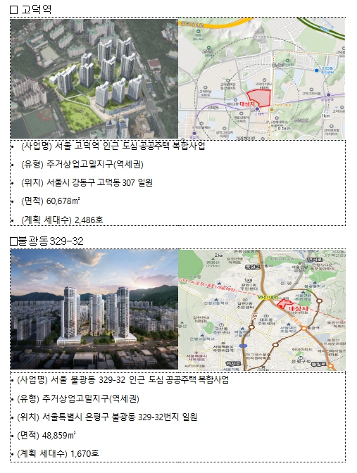 ![]() 신규 도심 공공주택 복합지구 2곳 사업 개요 |