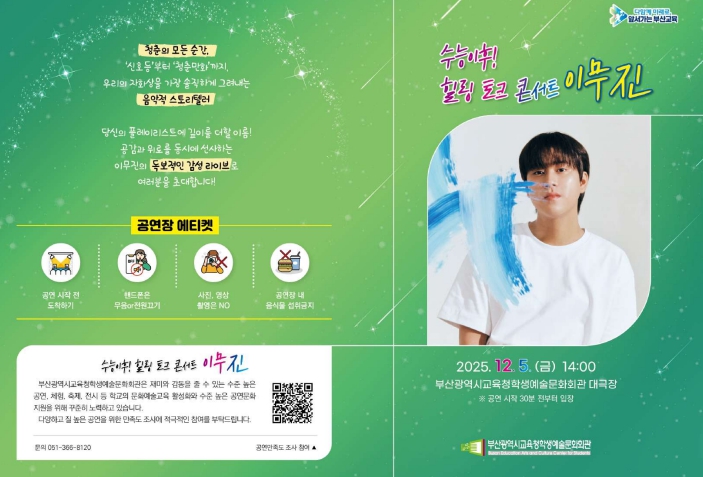 이번 공연은 오랜 기간 학업에 매진해 온 고3 수험생들에게 위로와 응원을 전하고, 수능 이후 새로운 여정을 시작하는 학생들에게 잠시 멈춰 숨을 고를 수 있는 ‘쉼의 시간’을 제공하기 위해 마련했다.