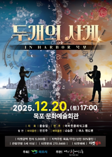 목포시 관계자는 “연말을 맞아 시민들께 감동과 위로, 그리고 새로운 희망을 전할 수 있는 특별한 공연을 준비했다”며 “많은 관심과 참여를 부탁드린다”고 말했다.