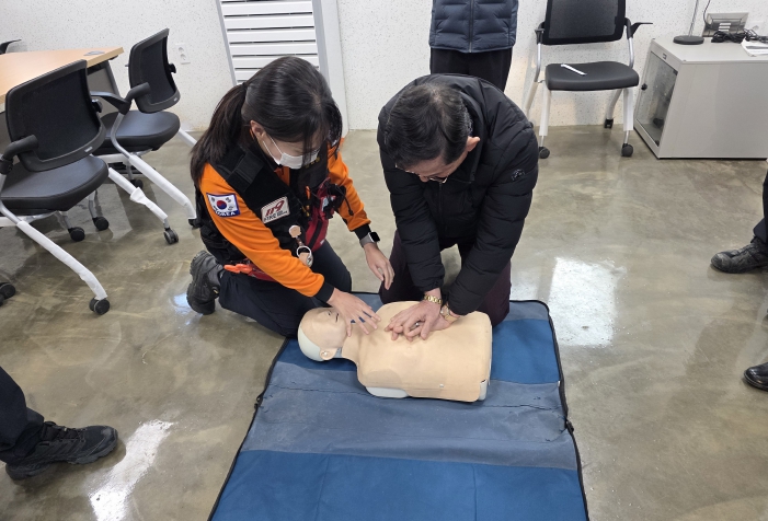 ![]() 창녕정기시장 상인회에서 소방서로부터 전통시장 안전점검과 병행한 심폐소생술 교육을 받고 있다. |