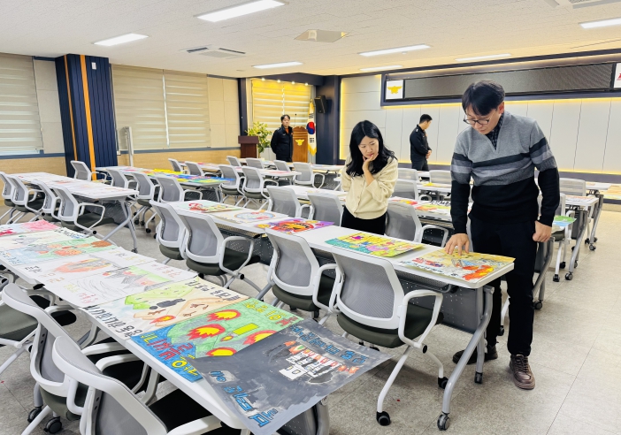 ![]() 어린이 불조심 포스터 공모전 심사 모습 |