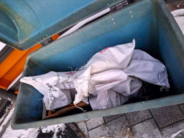 ![]() 관내 한 제설함의 내부 모습(염화칼슘 포대가 일부 남아있으나 정돈되지 않은 채 방치되어 있고, 이미 개봉되어 굳어버린 듯한 모습도 관찰된다.) |
