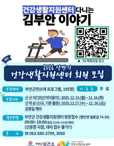 ![]() 부안군 건강생활지원센터, 2026년 상반기 신체활동 프로그램 참여자 모집 |