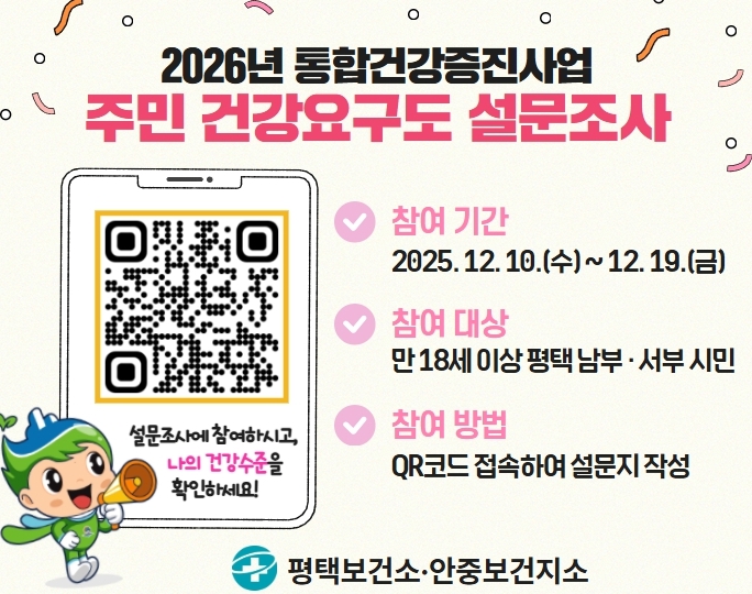 ![]() 평택시, 2026년 주민 건강요구도 조사 실시 |