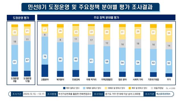 ![]() 12월 민선8기 경기도정 긍정평가 67%. 9월 대비 6%p 상승 |