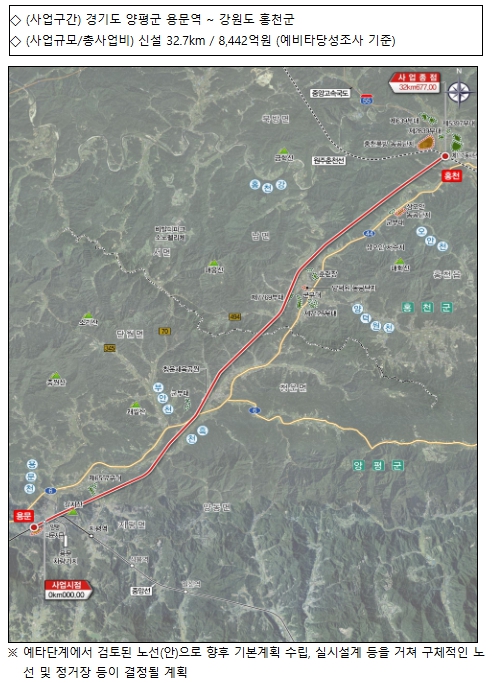 ![]() 용문~홍천 광역철도 사업개요 및 위치도 |