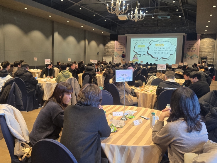 1부에서는 ‘작은 학교의 큰 배움 사례 나눔’을 주제로 작은학교특색교육과정과 초·중등 결이음교육과정 운영 사례를 공유했으며 2부에서는 2025학년도 운영 결과 및 만족도 조사, 교원연구공동체 성찰 자료를 바탕으로 교육과정 운영 성과와 개선 방향을 논의했다.
