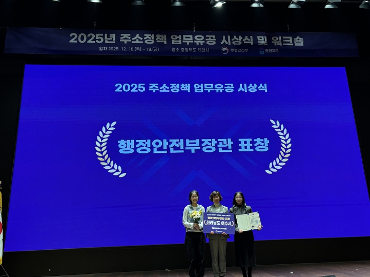 ![]() 여수시는 행정안전부가 주관하는 ‘2025년 주소정책 업무 유공 평가’에서 우수기관에 선정돼 행정안전부 장관 표창을 수상했다. |