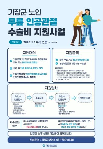 ![]() 기장군, 어르신 무릎인공관절 수술비 지원사업 시행 |