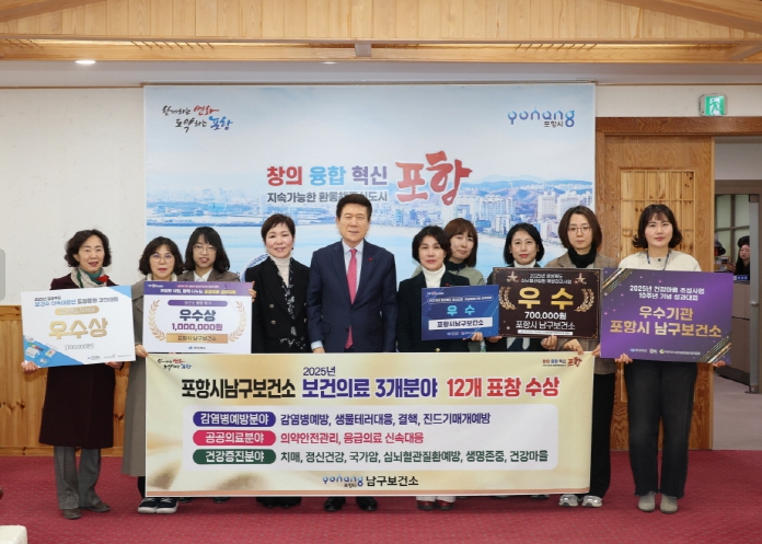 ![]() 포항시 남구보건소가 2025년 한 해 동안 보건의료 전 분야에서 탁월한 성과를 거두며, 중앙부처와 경상북도 평가 등에서 총 3개 분야 12개의 상을 휩쓸었다. |