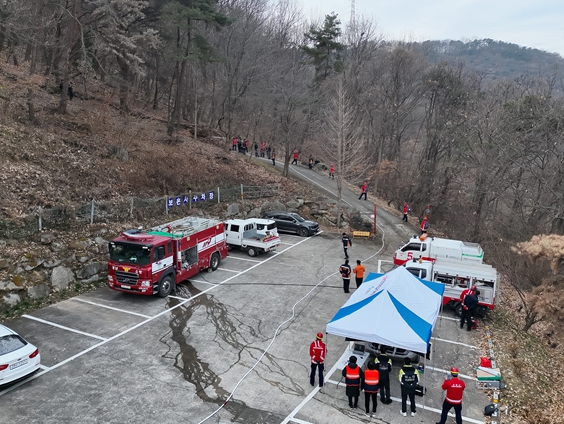 훈련은 산불 발생 초기 진화 대응, 산불진화장비 활용 및 진화용수 지원체계 점검, 통합지휘체계 운영 등 단계별 시나리오에 따라 진행됐다.