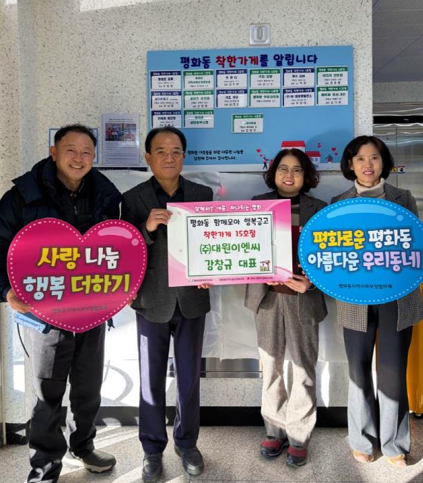 심미조 평화동장은 “착한가게 정기기부에 동참해 주신 강창규 대표님께 감사드린다”며 “앞으로도 지역사회 전반에 나눔 문화가 확산될 수 있도록 꾸준히 노력하겠다”고 전했다.