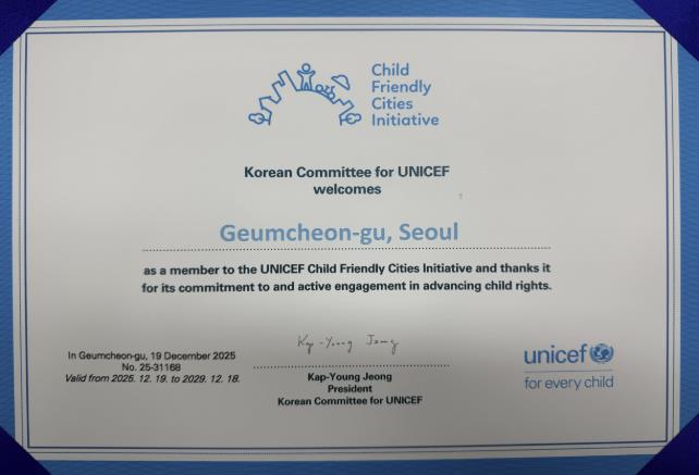 이어 “이번 재인증 획득을 계기로 아동들의 목소리를 경청하고 건강한 성장을 체계적으로 지원하겠다”라며 “금천구를 어른과 아이 모두 행복한 도시로 발전시켜 나가겠다”라고 밝혔다.