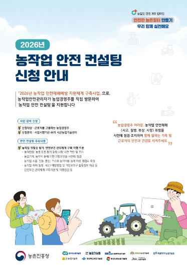 서동철 농촌자원과장은 “농작업 안전은 일회성 시설 개선이 아니라 현장을 정확히 이해하고 지속적으로 관리하는 체계가 무엇보다 중요하다”며 “이번 사업을 통해 시군과 긴밀히 협력해 농업 현장의 위험요인을 선제적으로 줄이고, 농업인이 안심하고 일할 수 있는 안전한 작업 환경을 조성해 나가겠다”고 말했다.