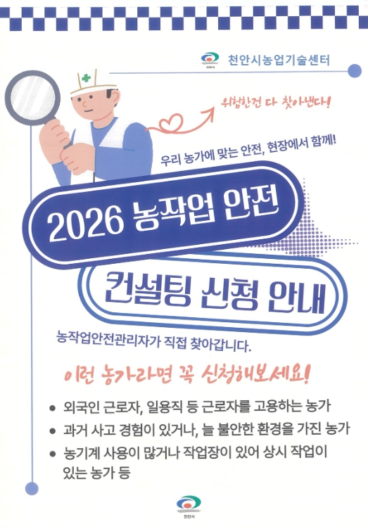 농작업안전관리자가 농가에 방문해 ▲농작업장 등 위험사항 사전 확인 및 조치 ▲농업기계, 농자재 등에 대한 위험요인 점검 ▲농작업 소음, 진동, 분진, 농약사용 등에 따른 위험도 측정 ▲개인보호구 활용정보 제공 등에 대한 컨설팅을 제공할 예정이다.