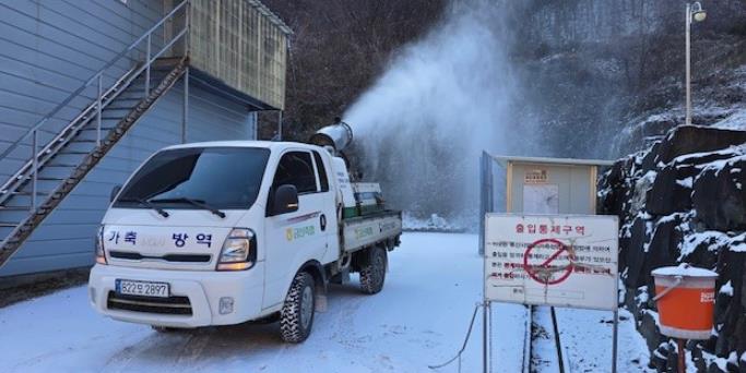 소독은 농장 출입구와 축사 주변, 차량 바퀴 등을 중심으로 진행되며 소 사육농가의 경우 축사 내부 소독도 병행된다.