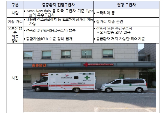 ![]() 일반 구급차와 중증환자 전담구급차 비교 |