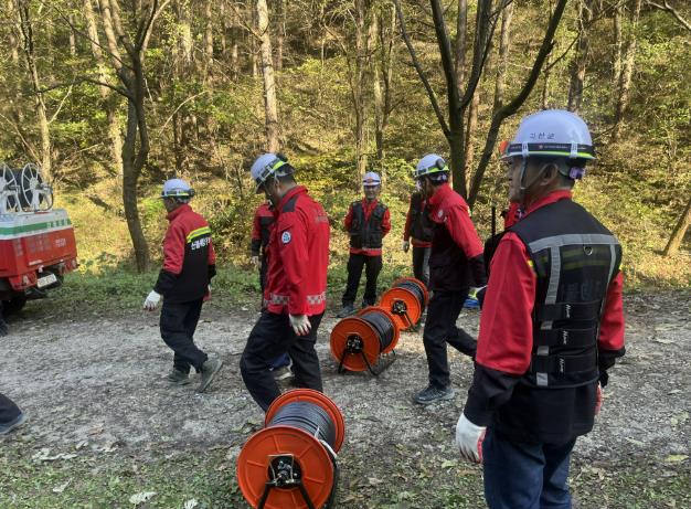 ![]() 산불감시원들이 본격적인 산불기간 전에 현장 실습을 하고있다 |