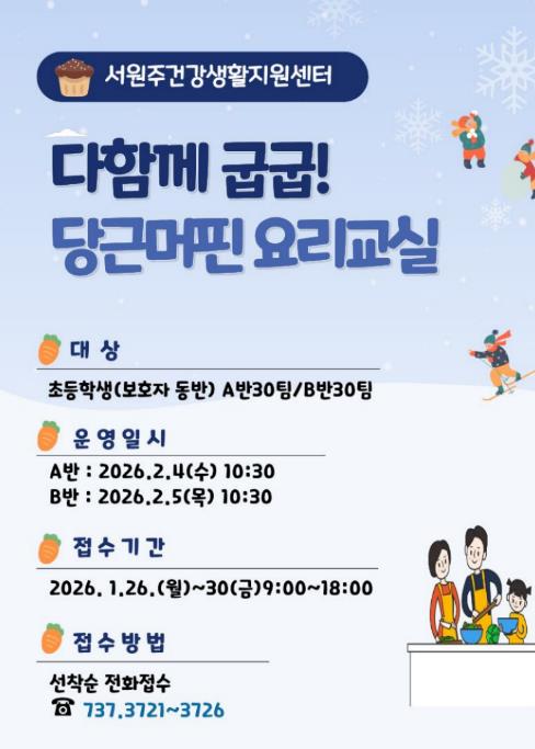 프로그램은 2월 4일과 5일, 두 차례에 걸쳐 운영된다. 회차별로 오전 10시 30분부터 1시간 동안 영양교육과 요리 실습이 진행된다.