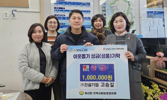 박진영 부산면장은 “병오년 새해 시작과 함께 따뜻한 나눔을 실천해 주신 고승길 대표님께 감사드린다”며 “전달받은 성금을 통해 관내 취약계층과 독거노인을 위한 다양한 복지 사업을 펼쳐 나가겠다”고 전했다.