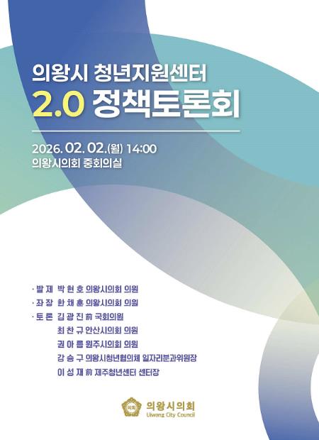 한채훈 의원은 “청년지원센터 2.0은 단순히 시설 하나를 늘리는 문제가 아니라, 전세 사기나 부당 해고 등 청년이 위기에 처했을 때 가장 먼저 찾을 수 있는 공적 안전망을 만드는 일”이라며, “오늘 토론회에서 나온 제언들을 바탕으로 박현호 의원과 협력하여 '의왕시 청년 기본 조례'의 개정과 실효성 있는 예산 확보를 이끌어내겠다”고 강조했다.