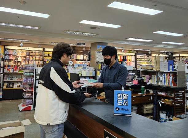 ![]() 동네서점 희망도서 바로대출 서비스를 이용하는 모습. |