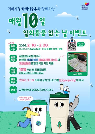 ![]() 거제시, 매월 10일‘일회용품 없는 날’이벤트 실시 |