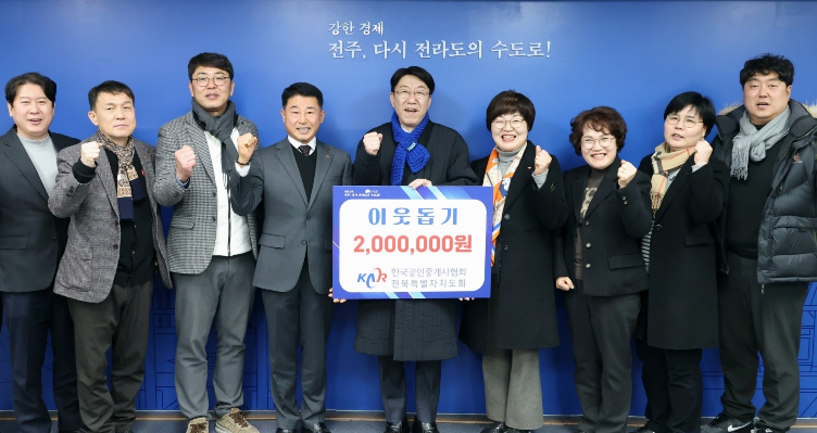 이날 기탁된 성금은 전북지역 공인중개사 회원들이 추운 겨울철 외롭게 지내는 취약계층과 사회적 고립 가구에 실질적인 도움을 주고자 자발적으로 뜻을 모아 마련한 것이다.